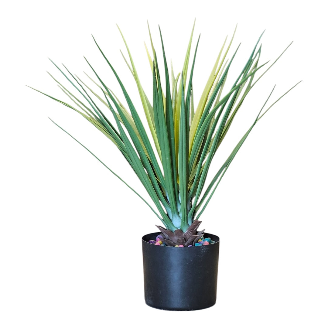 Add an instant touch of modern, arid style to your space with this stunning faux plant. Featuring a cluster of long, sword-like leaves in a natural green and yellow variegation, it brings sophisticated texture without any upkeep.